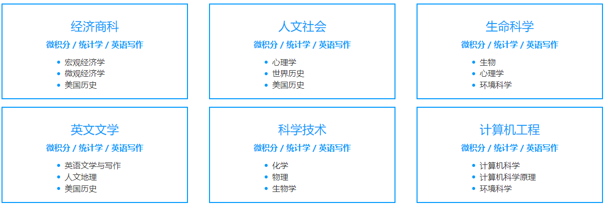 2.考生选择AP考试至少需要报考3门或以上科目以此向考官展现全面的学术能力。